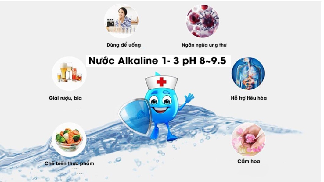 + Nước kiềm hydrogen Alkaline cấp độ 2 (pH~8.5) dùng để uống